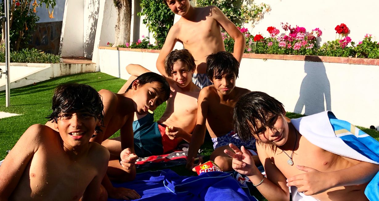 Los de 5º y 6º EP dan por inaugurada la piscina. Tras toda la tarde haciendo deporte se pegaron el primer chapuzón de la temporada.